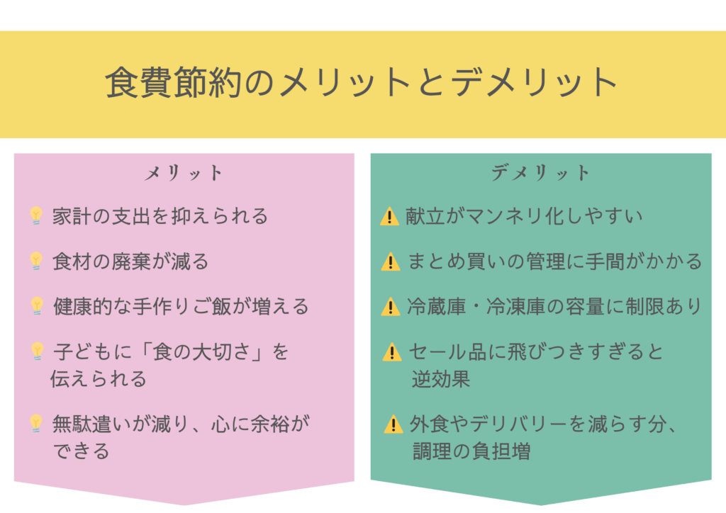 - 栄養バランスを気にせず節約 → 家族が不満顔に